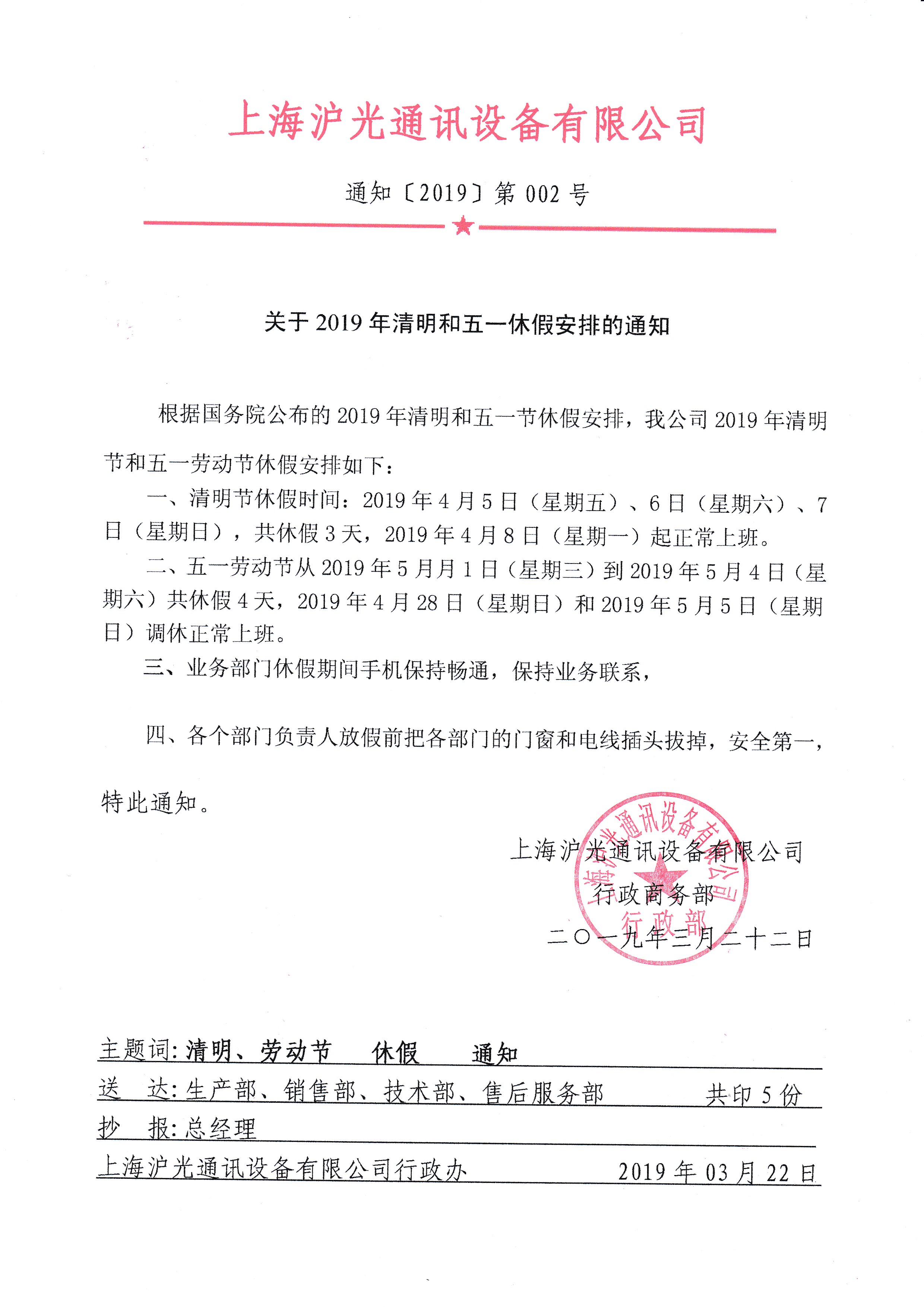 關(guān)于2019年清明和五一休假安排的通知