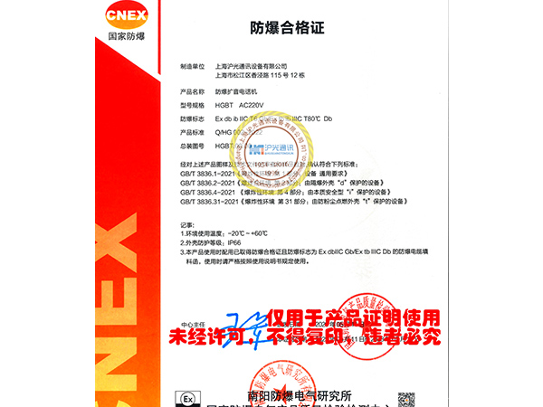 防爆擴(kuò)音電話(huà)機(jī)防爆合格證書(shū)