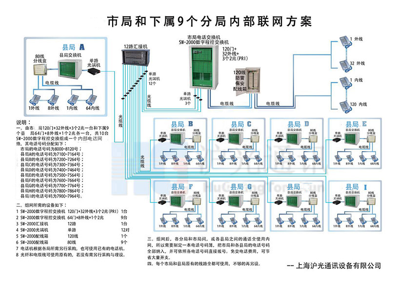 市局和下屬9個(gè)分局內(nèi)部聯(lián)網(wǎng)方案