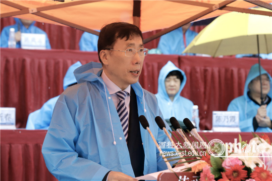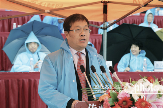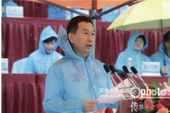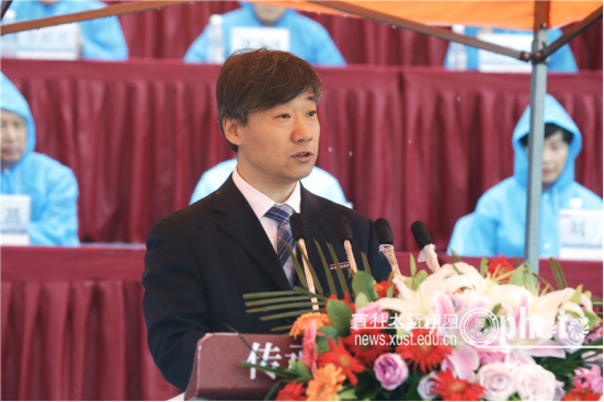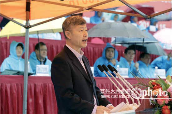 上午9時(shí)15分,學(xué)校田徑運(yùn)動(dòng)場(chǎng)歡聲雷動(dòng)。雄壯的國(guó)歌聲中,西安科技大學(xué)黨委書記周孝德宣布大會(huì)正式開始。