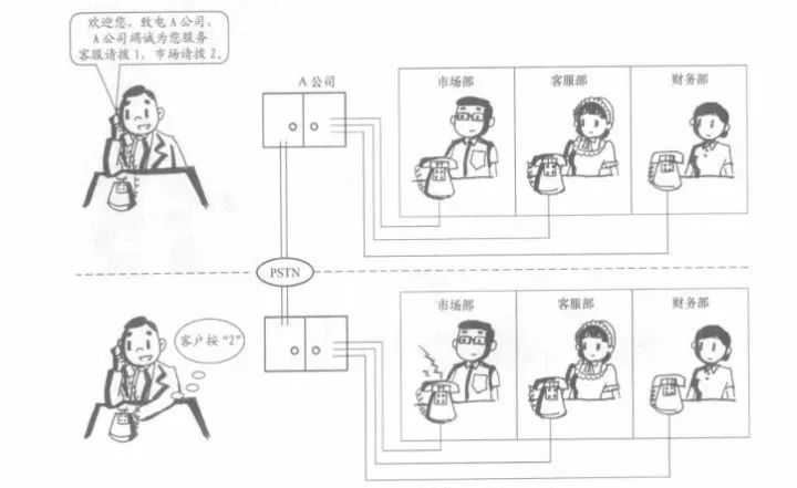上面的案例中,只是從客戶角度,體驗(yàn)到集團(tuán)電話的一個(gè)IVR語音導(dǎo)航功能。然而下面要說的是程控交換機(jī)對(duì)于企業(yè)來說,集團(tuán)內(nèi)部的功能。