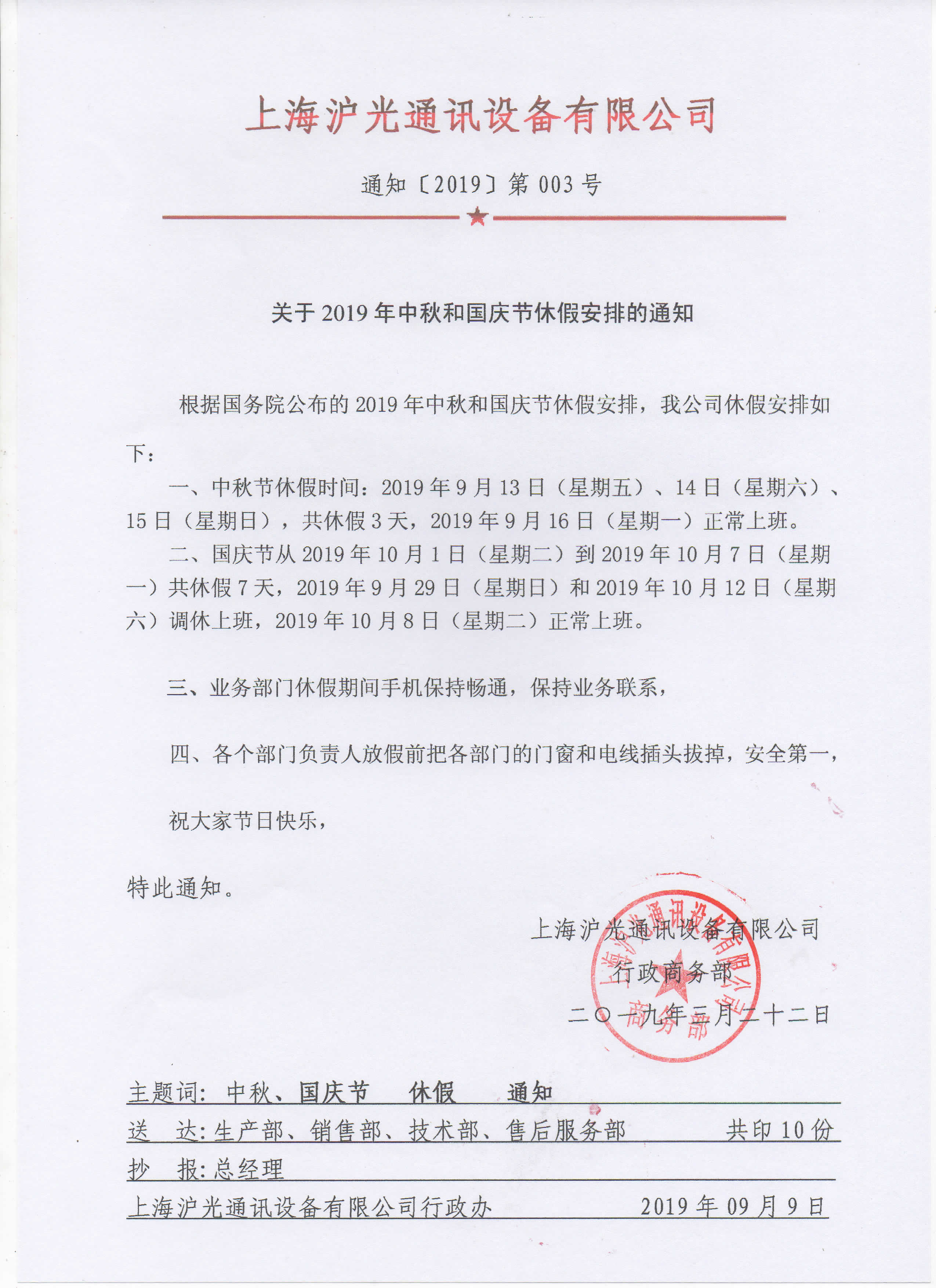 關于2019年中秋和國慶節(jié)休假安排的通知