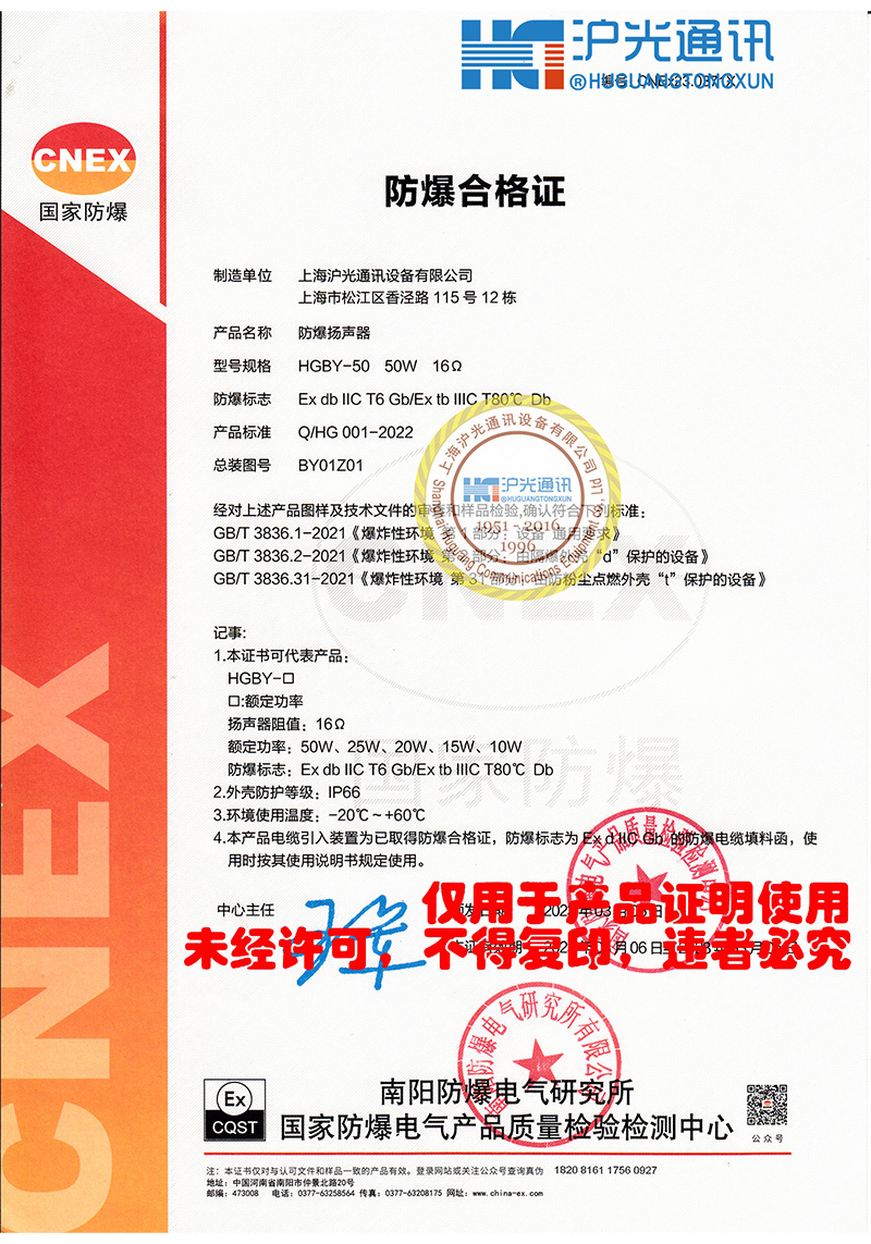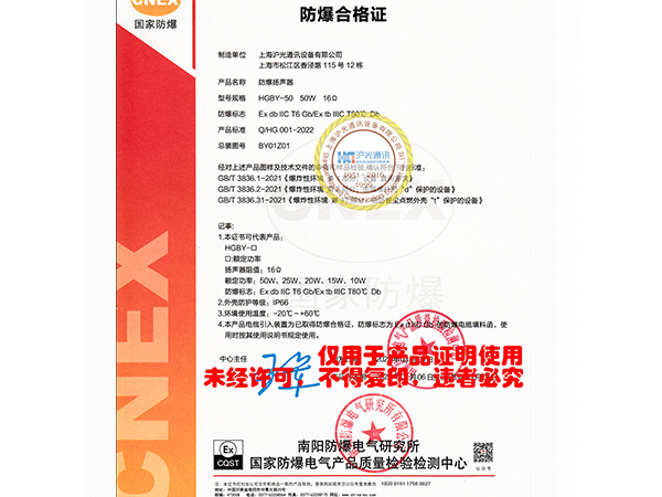 防爆揚(yáng)聲器防爆合格證書