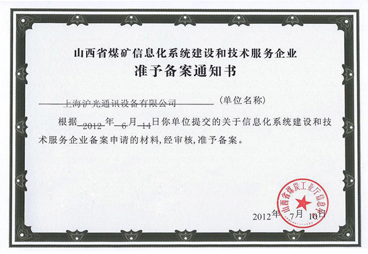 2012滬光山西煤炭準(zhǔn)予備案 備案通知書